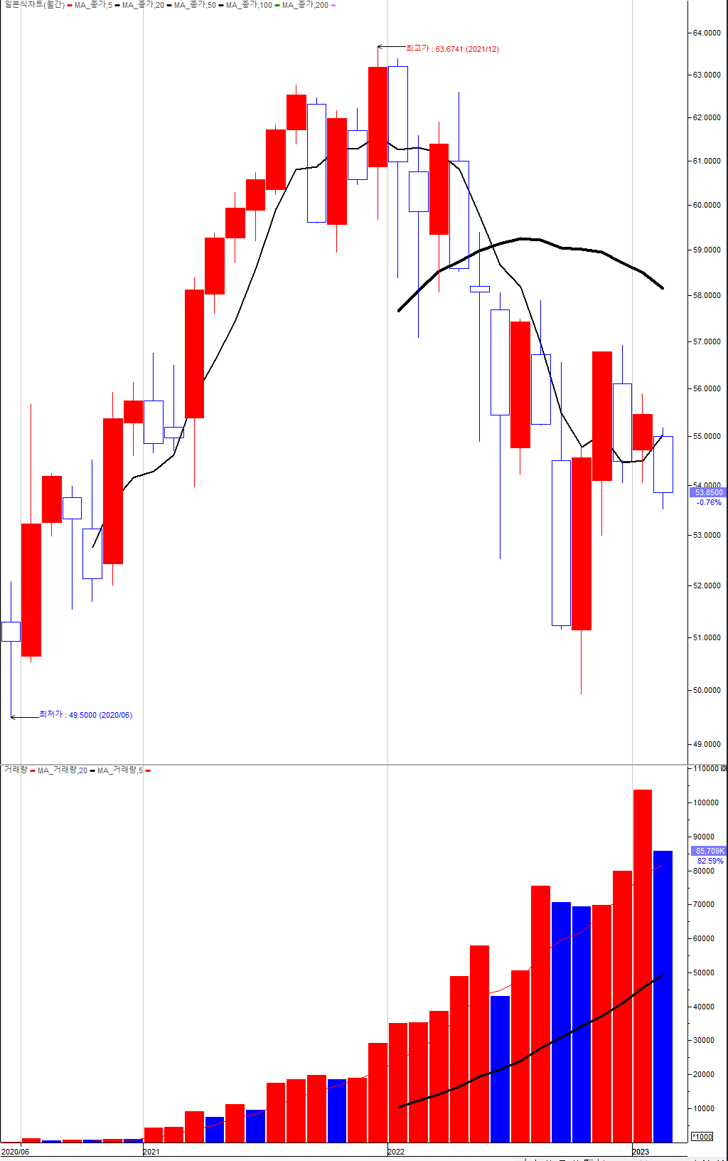 다음은 월봉차트이다.