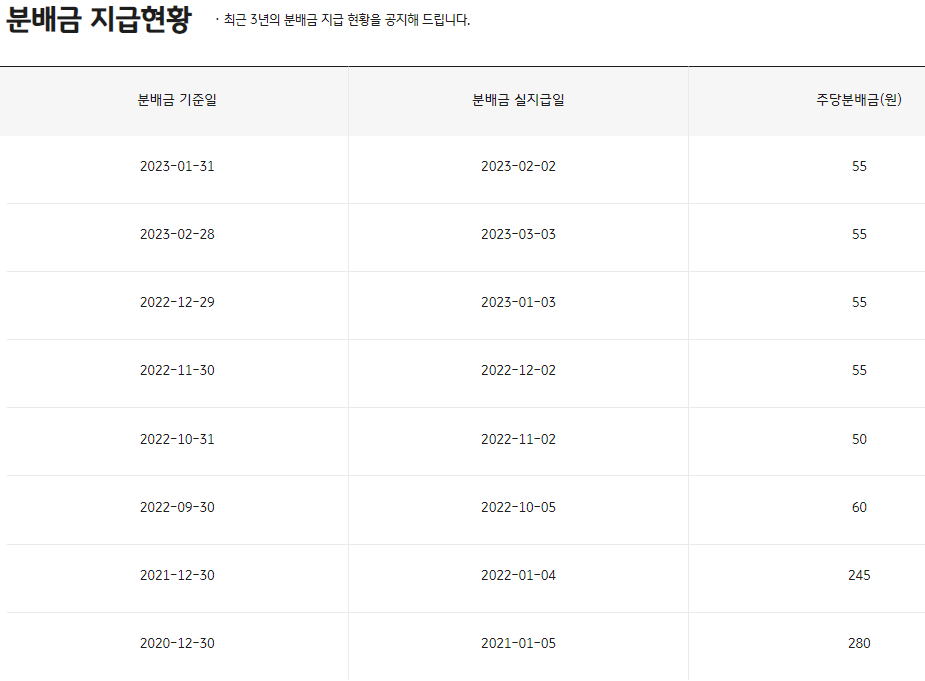 배당금은 월평균 55원 수준으로